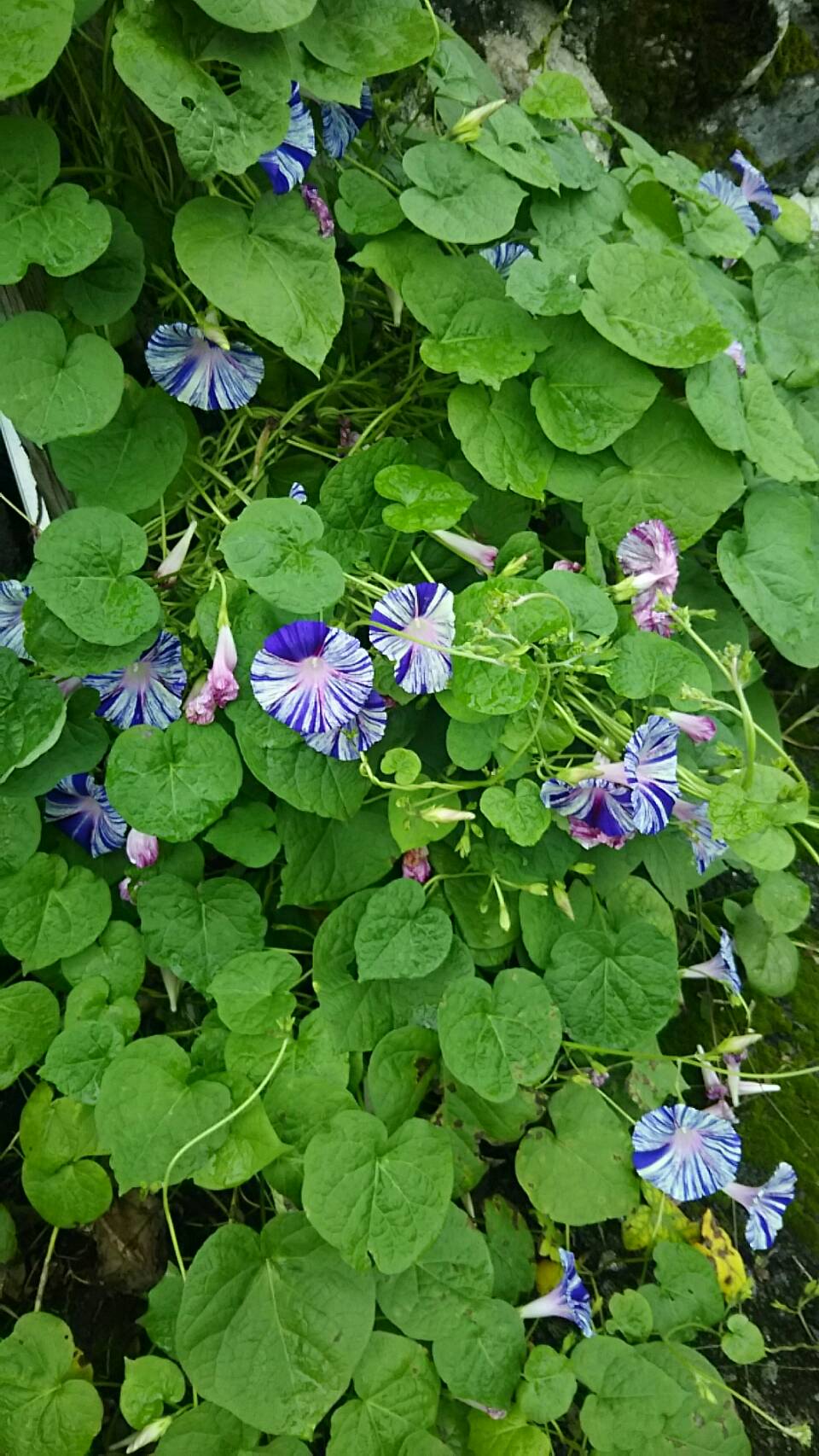 夏の早くから秋の結構遅くまで咲く朝顔です