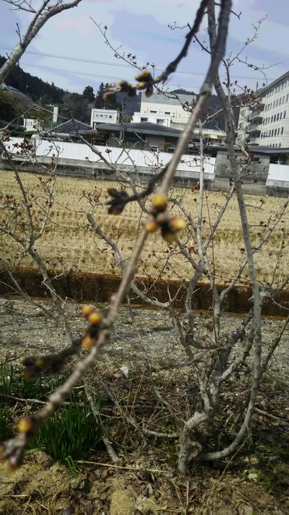 桜の蕾も少し膨らんできています(近すぎてピンボケですが)