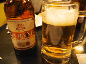 外国人技能実習生の面接を終えた後は、やはりベトナム現地の美味しいもの・グルメを食べないわけにはいきません。まずはハノイビールからです。日本のビールと比べて、軽い感じがしますね。暑い気候の影響で、軽いビールが好まれるのでしょうか。
