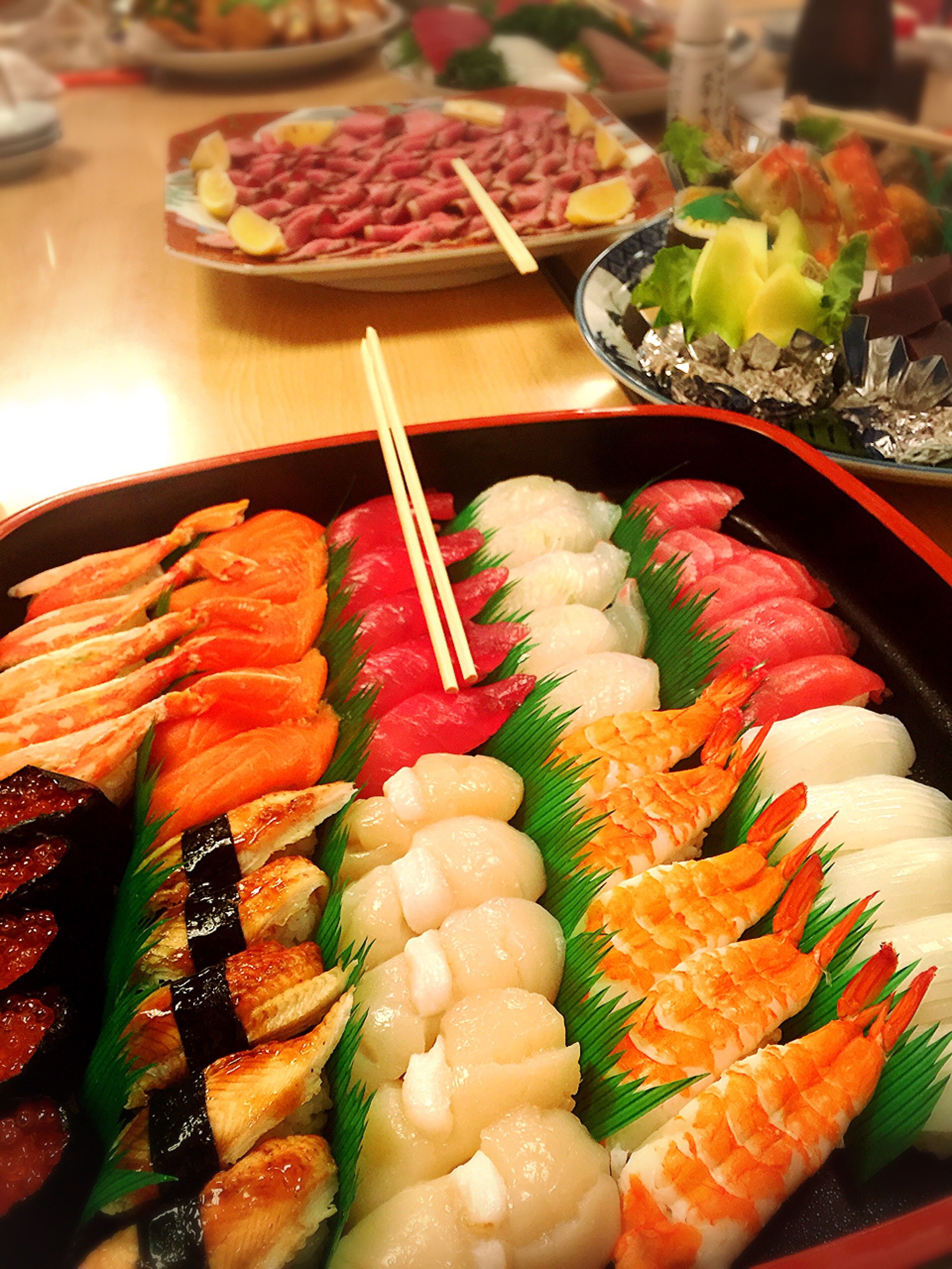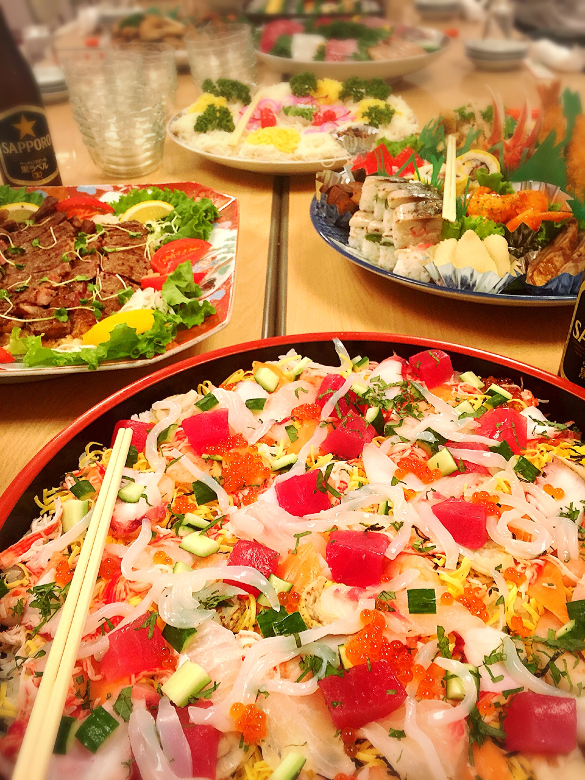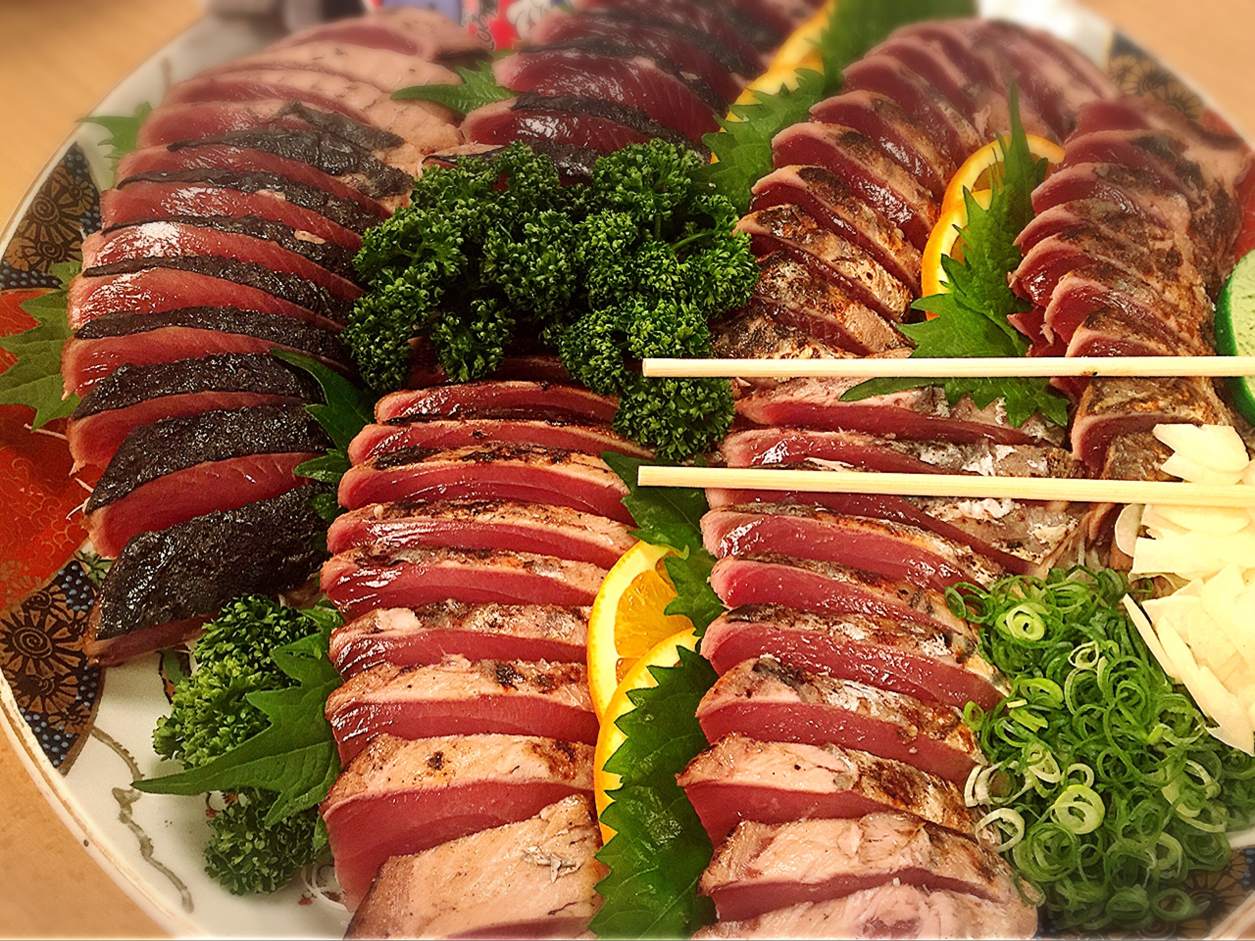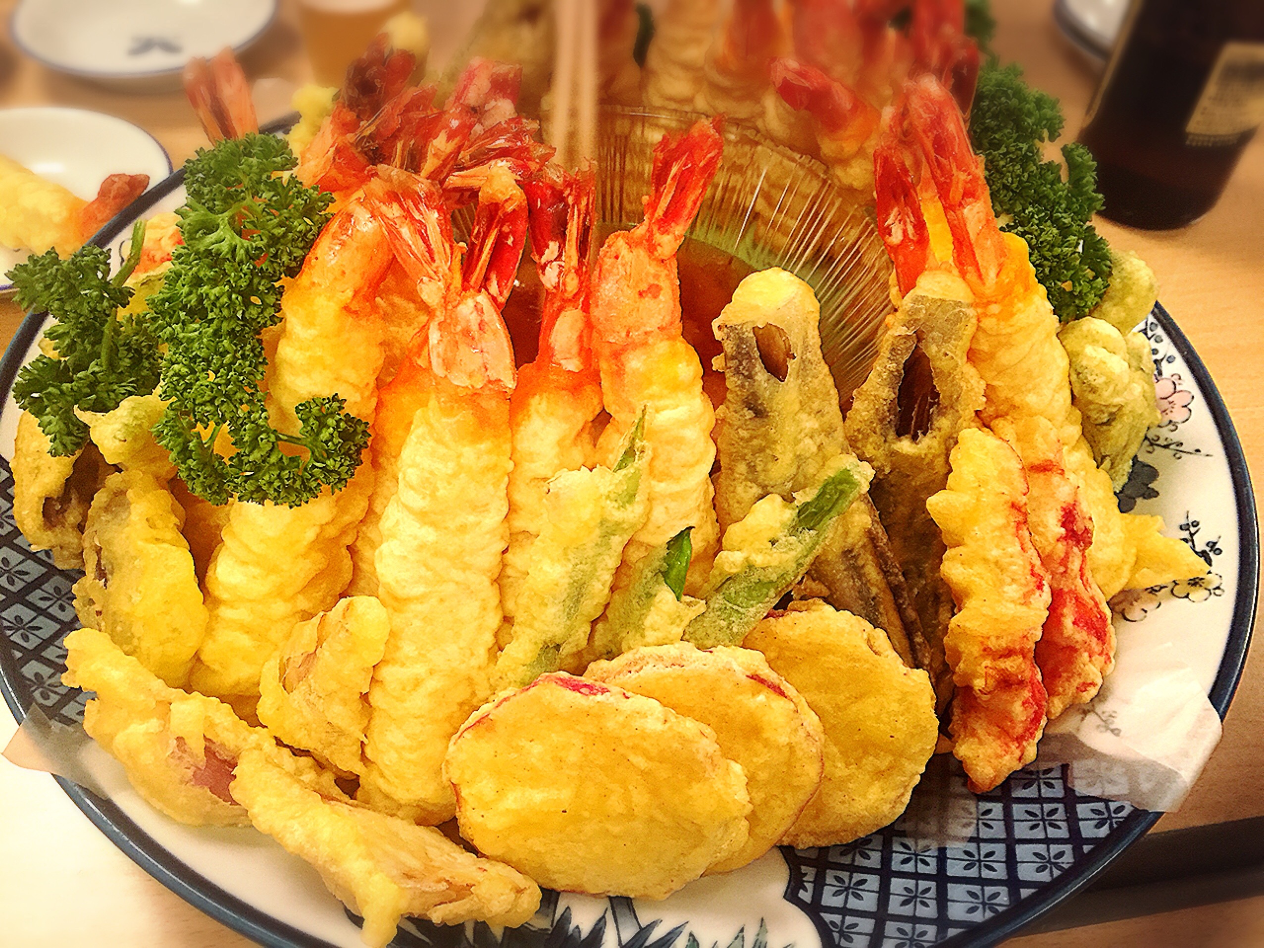 天ぷら盛り合わせなど多くの料理を準備しました。もちろん組込みの皿鉢料理もご用意しております。