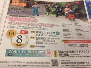 2019年新卒採用活動がスタートしました。1月8日にかるぽーとで開催された、高知業界研究インターンシップセミナーに参加しました。
