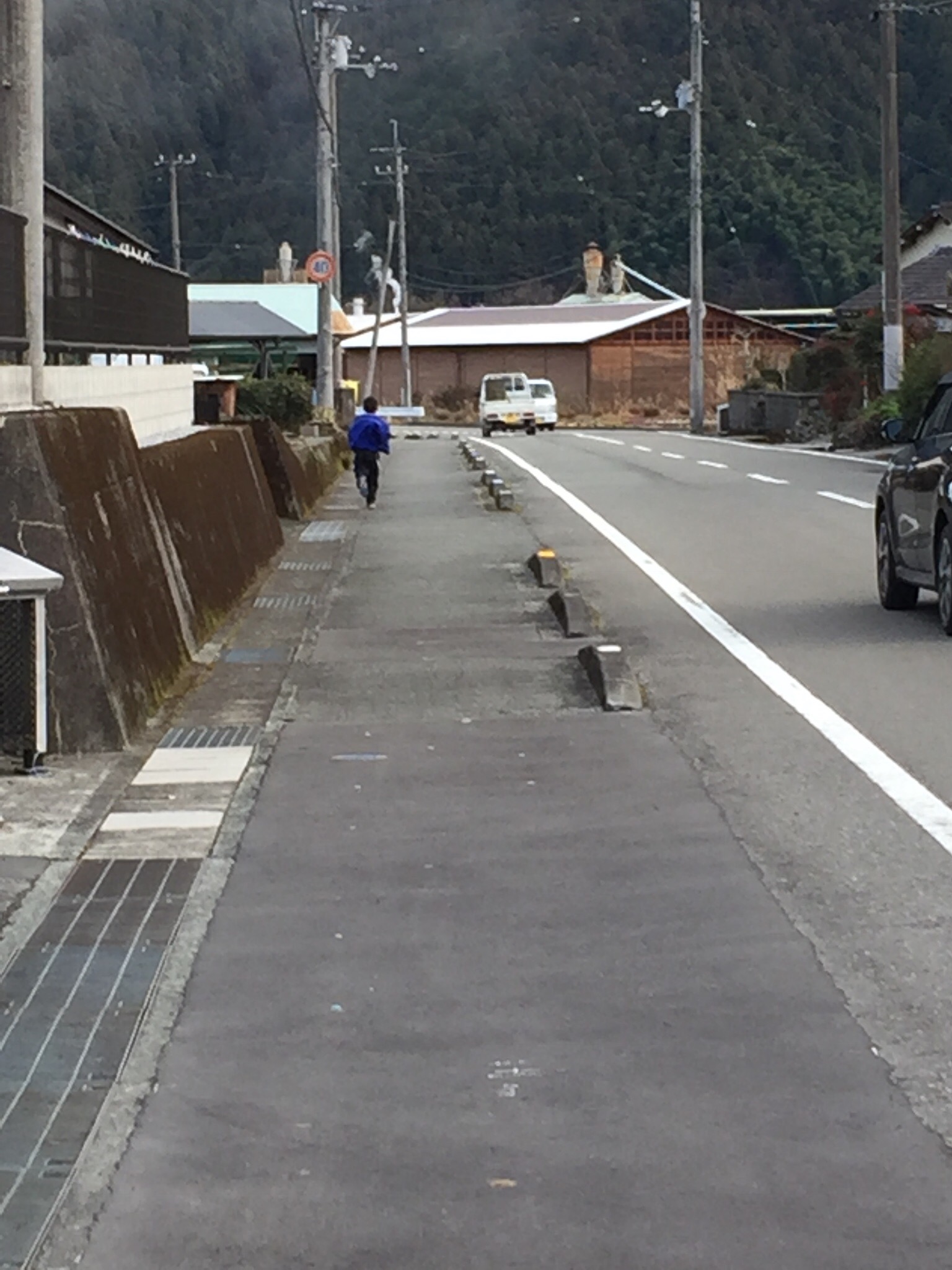 ですので、ほぼ一年ぶりのランニングになりますので、まずは体を慣らすことからしないといけません。そこで小学校三年生になる息子と一緒に、約4kmを走りに行くことに。スタートしてしばらくは、私のスペースに合わせてくれていましたが、しばらくすると上の画像のように離されて行きます。