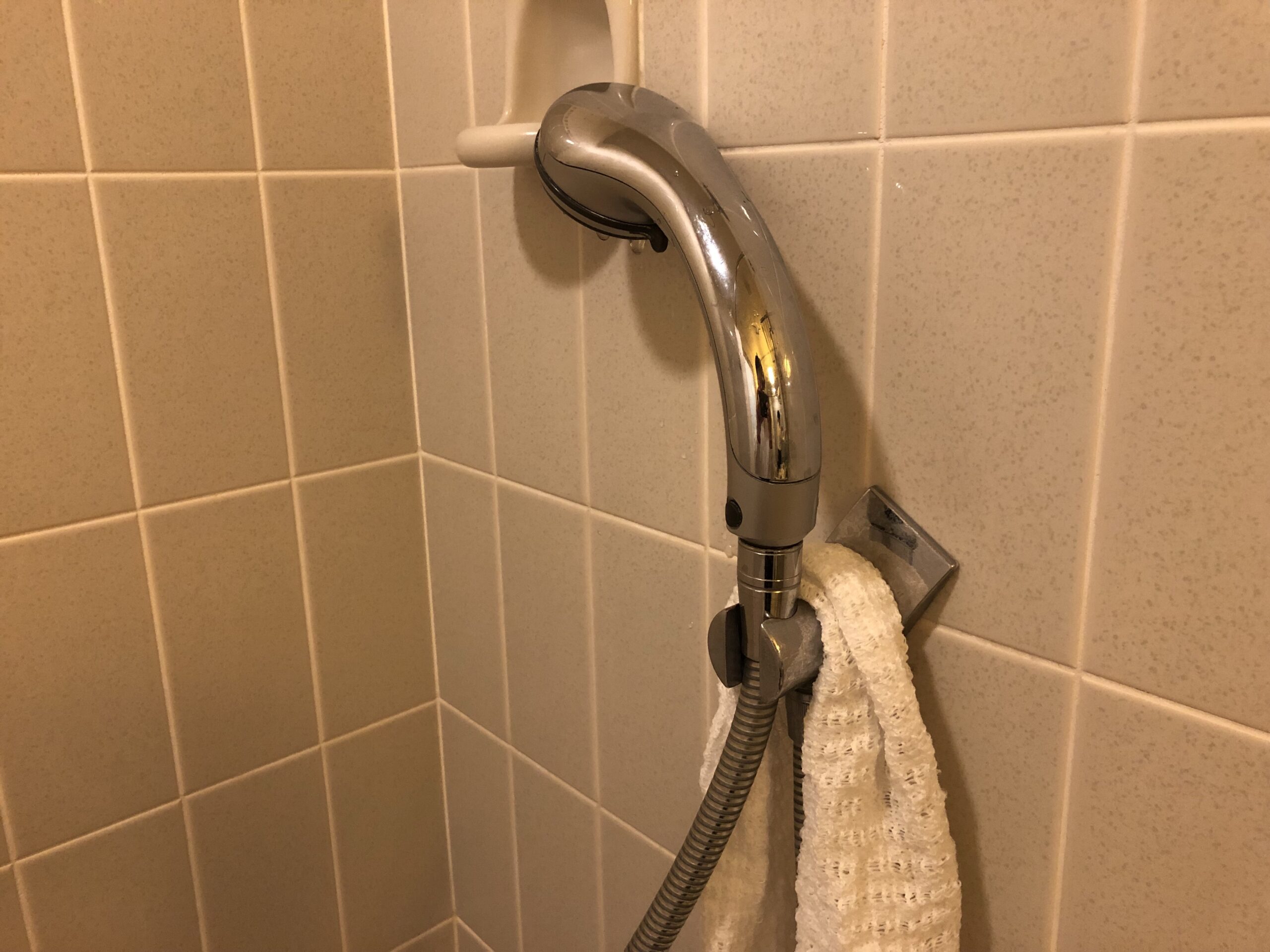 しかしながら、シャワーヘッドを壁側に向けるのは、なぜそうするのかわかりませんでした。私はシャワーヘッドからしたたる水をそうすることによって防ぐことができるのかと思っていました。