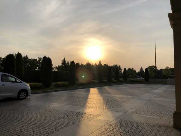 立派なリゾートホテルで山籠りをしていますが、経営計画書を作る以外は食事して、風呂に入って、寝るだけの生活です。外の空気が吸いたくなれば、早朝に散歩するとこのような朝日を見ることができます。