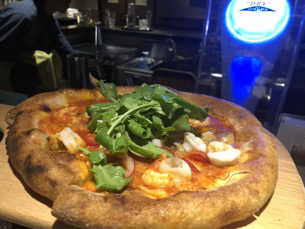 二日間歩きまくったので、足が棒のようになり、唯一の楽しみはもちろん美味しいものを食べることですね。お店はウルフギャング・パック PIZZA BAR アレア品川店」です。ウルフギャングと言えば、熟成肉とステーキが有名なお店ですが、イタリアンのお店がホテルの近くにあったので、迷わず選びました。