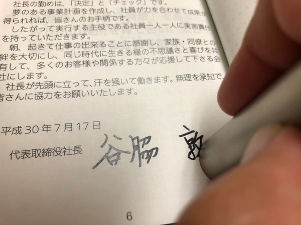 経営計画書が届いて、まずやることは、経営計画書発表にあたってのページに押印をすることです。昨年も同じような内容の記事を書いていますが、併せてチェックして見てください。