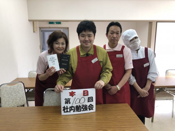 社内勉強会は価値観を揃えるために、社員向けに行なっている勉強会です。週1回、1時間で正社員に限らずパートさんまで誰でも参加できる勉強会です。週1回行なっていますが、業務の都合などので1回だけは参加者数が少ないので、同じテーマで3回ほど行なっています。そのいずれかに参加すればいいと言うことになっています。ですので、第100回とありますが、厳密に数えるとその3倍の300回を行なっていることになります。