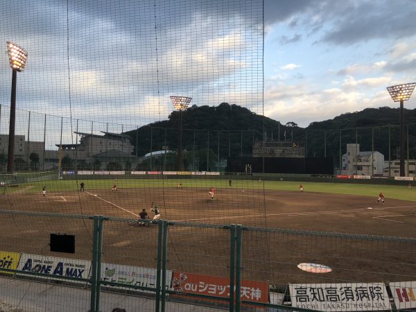 図書館を後にし、お次は高知ファイティングドッグスの試合応援に。息子が少年野球するようになってからは、野球が身近になって来ました。地元のチームがあると、自然と応援に力が入りますね。少年野球のお手伝いで、父親は審判をすることになっているのですが、選手より審判の動きの方が気になりました。結局は子どもより親の方が楽しんだ休日となっちゃいました。