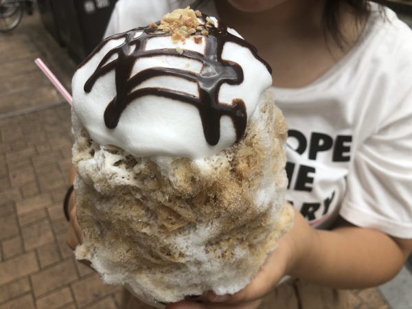 図書館を後にし、オーテピア近くにあるかき氷屋さんに行きました。こちらも巨大なかき氷ですが、とてもじゃありませんが一人じゃ食べきれません。二人でも厳しいぐらいです。まるで台湾にかき氷のようでしたが、今の流行りなのでしょうか。台湾のかき氷については、下記ブログをチェックしてみてください。