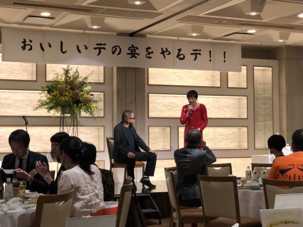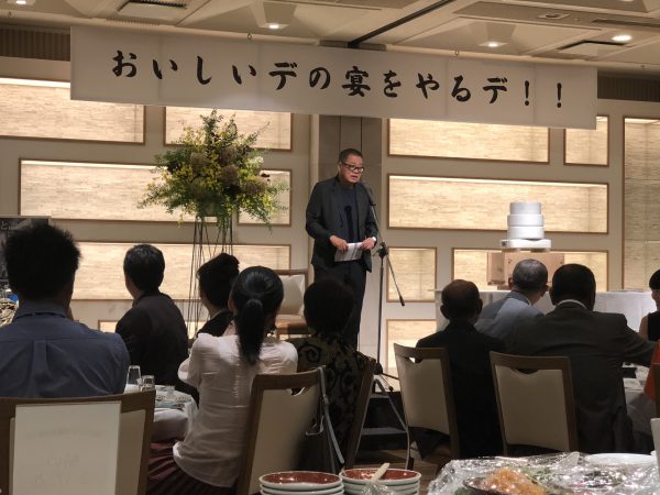 当社も「純米大吟醸 山(やま)」という日本酒を当社のオリジナル商品として発売しておりますが、実はこちらのラベルのデザインは梅原さんとのご縁で手がけていただきました。そんなお付き合いもございまして、今回「おいしいデの宴をやるデ!!」というおめでたい席に参加させていただきました。このブログを書いていて知ったのですが、非常に高価な本なのですね。
