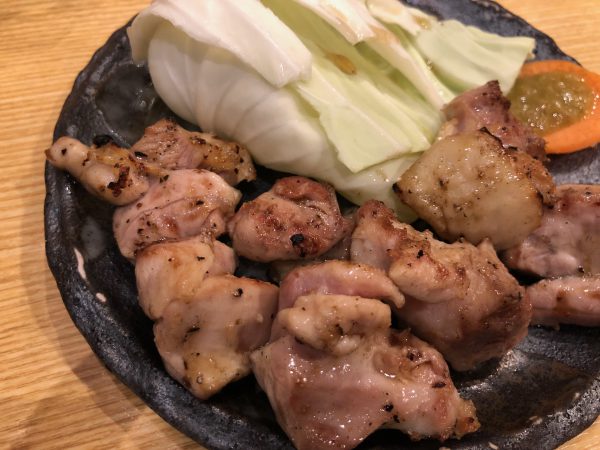 そして、茅乃屋さんに来たら、必ず食べるように言われていたのが、名物もも炭火焼です。私は焼鳥が大好きなので、高知市内に飲みに出る時によく選ぶのが焼鳥屋さんです。こちらはももは、串焼きではないですが、非常に美味しい焼鳥でした。0.5次会ですので、生ビールと酎ハイと2杯のみで終えましたが、また次回来るときはゆっくりと食事とお酒を楽しみたいです。