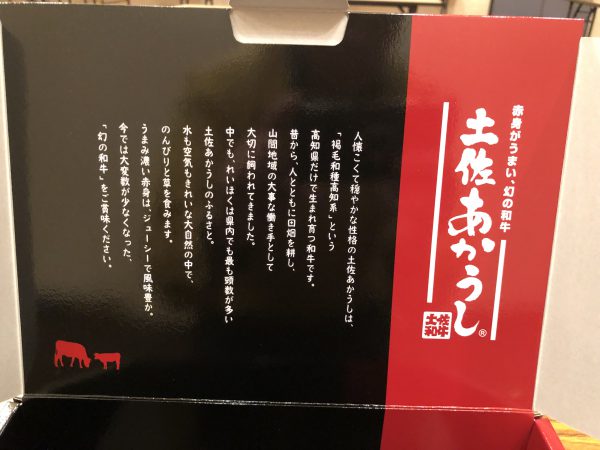 箱を開けると土佐あかうしについて、説明書きを書かれています。