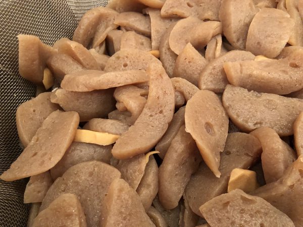 そこで今回はいなり寿司ではなく、こんにゃく寿司を詰めるのを任されてしまいました。こんにゃく寿司をまさに田舎寿司の代名詞と言っても過言ではありません。都会に住む友人に話しても、「何それ!?聞いたことない。」「一度食べてみたい。」と言われぐらいですので、我々にとったら当たり前のお寿司が、非常にレアなお寿司なのかもしれません。