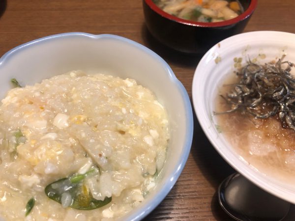 七草粥ならぬ七草雑炊です。あんまり七草が入っていませんが、そこは軽くスルーしてください。七草雑炊は朝食にいただきましたが、体が休まる、胃をいたわる、そんな印象を受けています。今年も土佐町駅伝に出たり、更には昨年痛い思いをした龍馬マラソンに出たりなど、体を使うことが予定されていますので、休肝日を増やしたりランニングをしたりして、今年こそはしっかりと健康管理をしていきたいと思います。