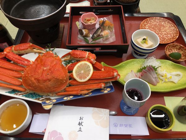 夕方には湯村温泉に到着して、ゆっくりと温泉に浸かることができ、日頃の疲れを癒すことができました。お待ちかねの夕食は、カニでしょ!この写真の他にもたくさんのカニ料理が出て来ましたが、やはり昼間に飲み過ぎた影響か、お酒も食事も進みません。朝から昼間から飲むのは非常に楽しいのですが、やはり限度が過ぎるとその後が大変だなと痛感しました。