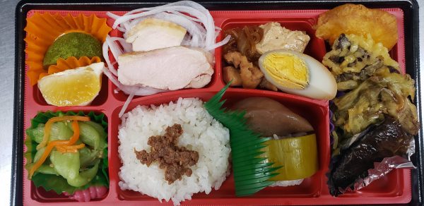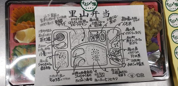 実はこのような弁当の試作に取り組んでいます。「里山弁当」と名付けていますが、まだ正式なお弁当の名前は決まっていません。実はれいほく博などを通じて、嶺北に土佐町に観光に来られている方が増えております。観光客向けへのお弁当を依頼されておりまして、何度も試行錯誤を繰り返しているのです。