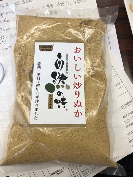 まだ開発途中の商品ですので、実際に販売されるパッケージとは異なる場合もありますので、その点もご理解いただけたら助かります。実はこのいりぬかも認定商品として決まったものの一つです。