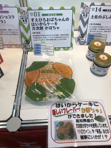 高知県ブースには、高知県のうまいもの大賞受賞された商品のPRも一緒にされていました。おかげさまで、当社のはいからケーキ「万次郎かぼちゃ」味も展示されており、お披露目できるいい機会になりました。