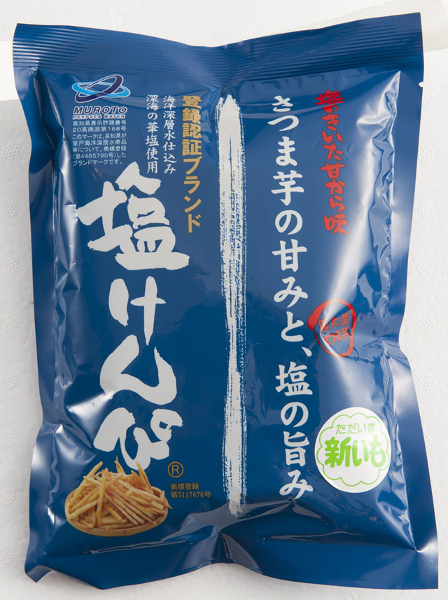 塩けんぴは、ふつうの芋けんぴより、スティックの太さが細く