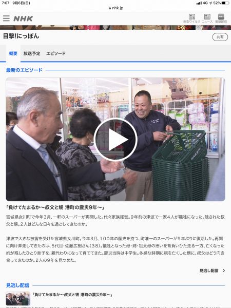 内容は東日本大震災から復興を遂げたスーパーマーケットのお話です。