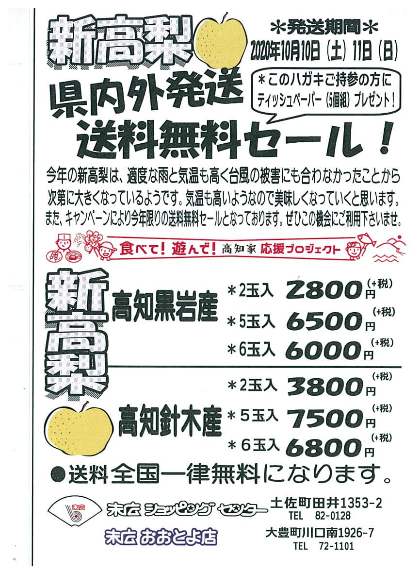 2020年10月10日・11日は新高梨発送、送料無料セール!