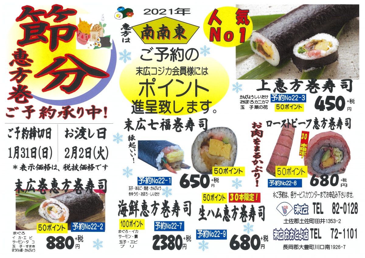 海鮮やお肉を使ったオリジナルの恵方巻を数多く取り揃えております!