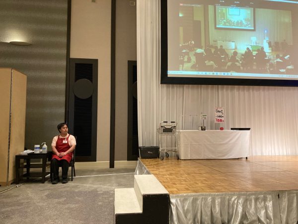 上の画像は壇上に上がる前の様子ですが、非常に緊張している様子が伺えます。