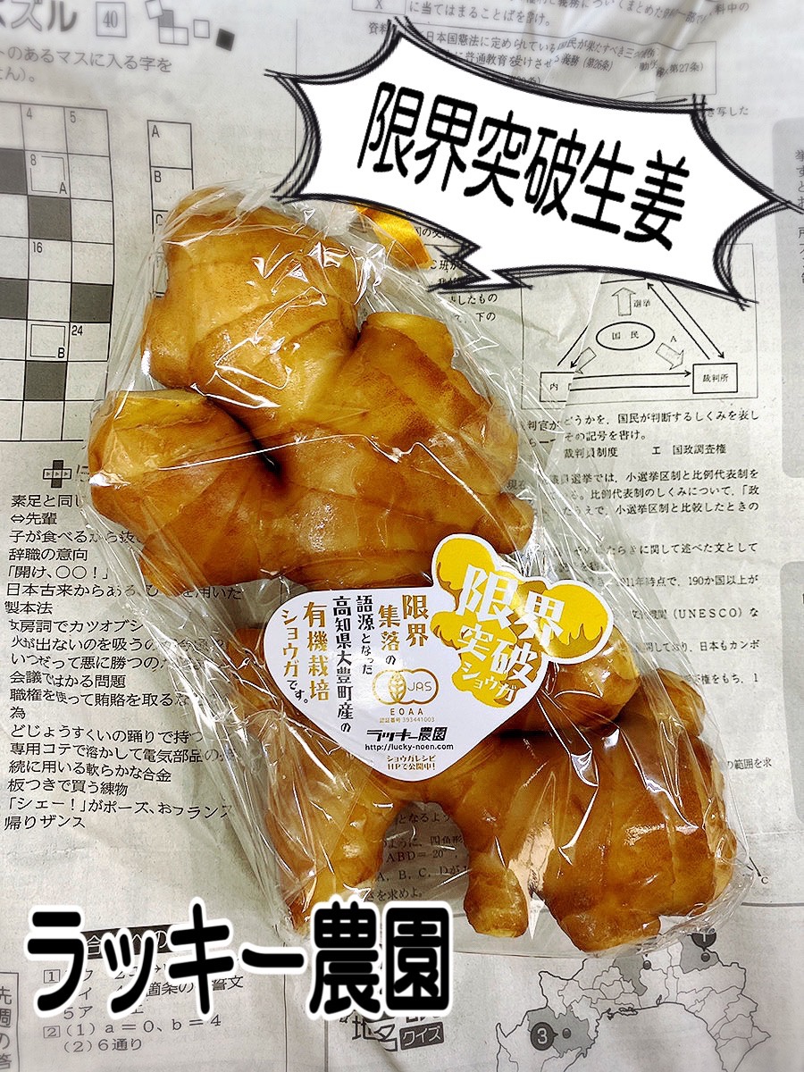 この生姜は限界集落で限界を設定せずに作った「限界突破生姜」めっちゃ大きくて美味しそう!