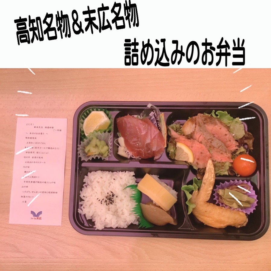 昼食は今回も高知の名物、末広の名物を詰め込んだお弁当でした。