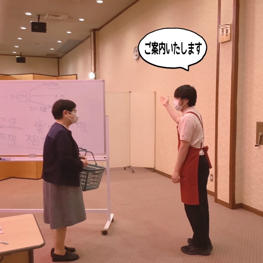 レジ、フロアのスタッフ中心に笑顔の作り方や、売り場案内の仕方など丁寧にご指導頂きました。
