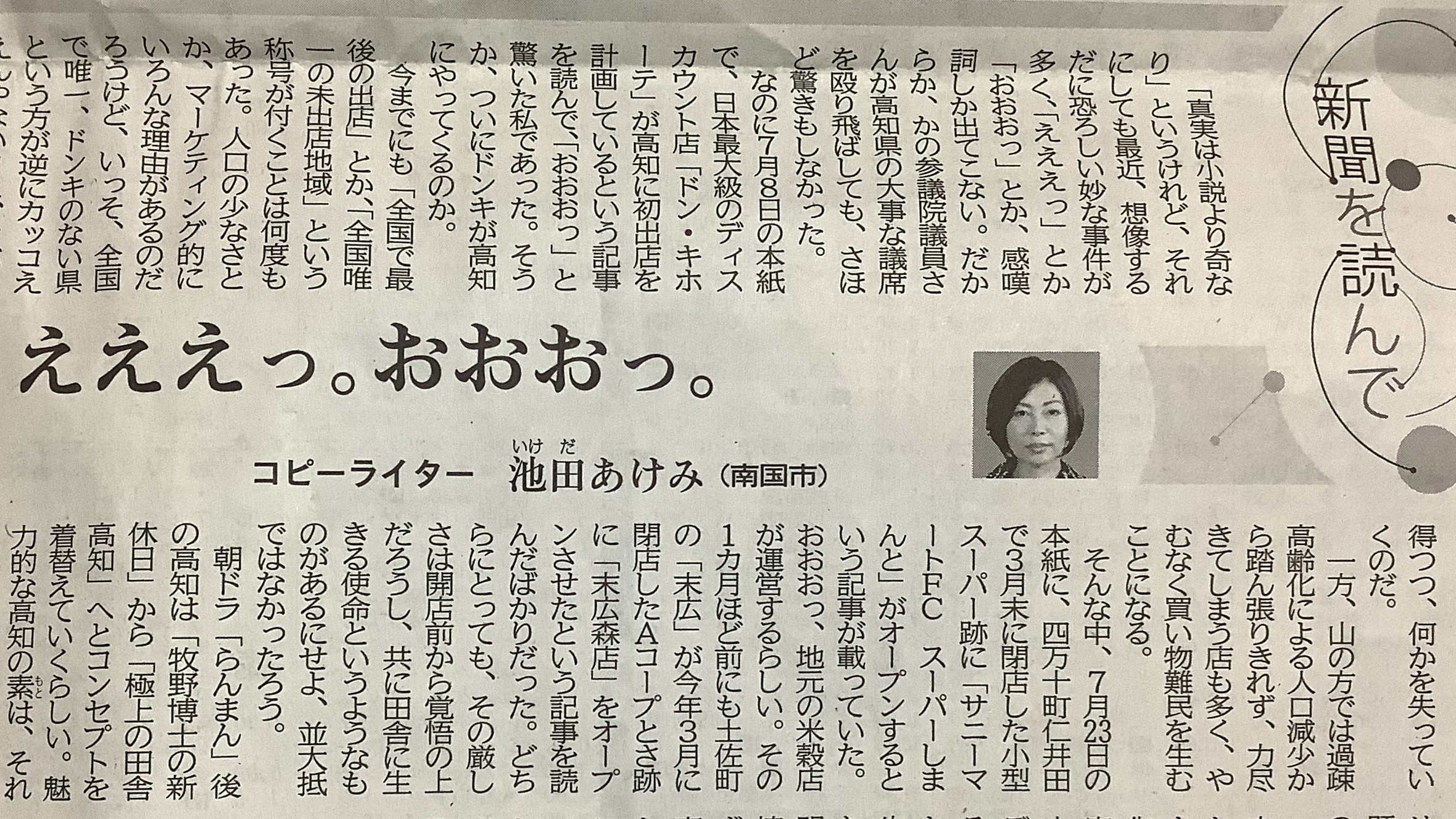 先日高知新聞ですこし「末広」「末広森店」のことにふれられていました。