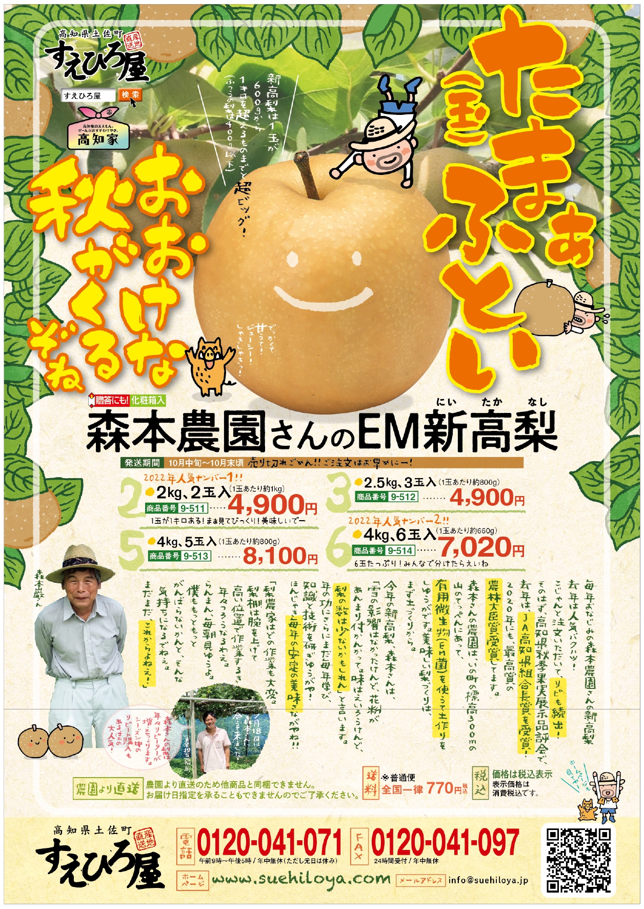 すえひろ屋では、高知の秋の味覚・新高梨(にいたかなし)のお知らせチラシが完成しました!!