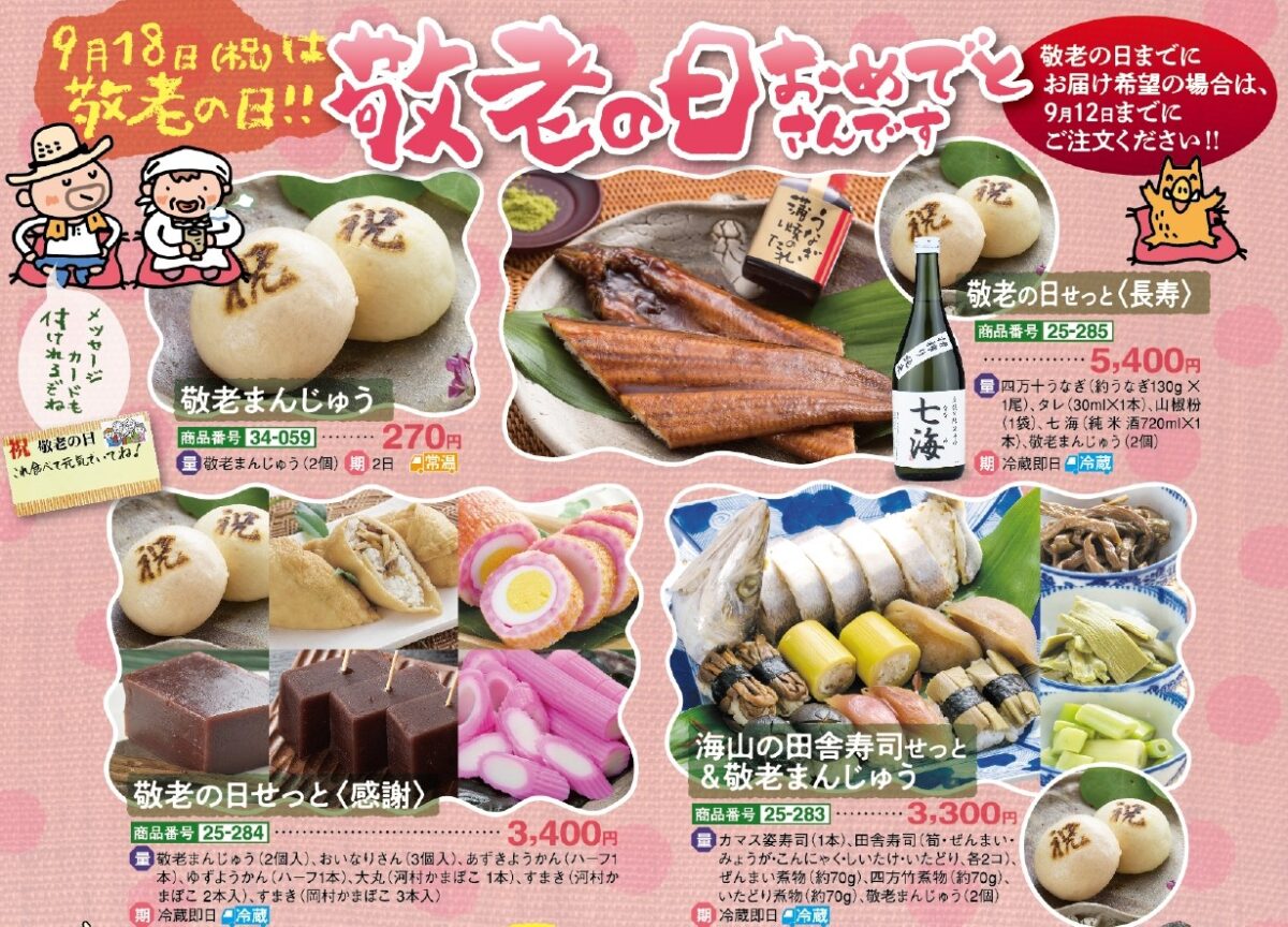 去年人気だったのは「海山の田舎寿司せっと&敬老まんじゅう」のセットです。