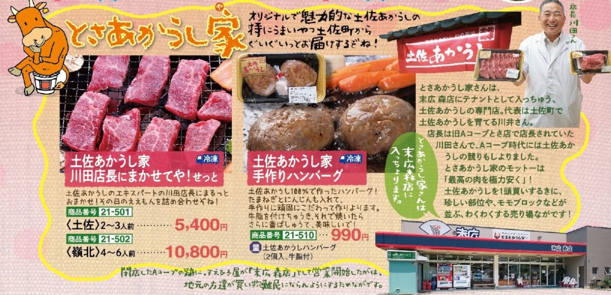 川田店長のそのときおすすめの土佐あかうし・お肉の詰め合わせも登場です。