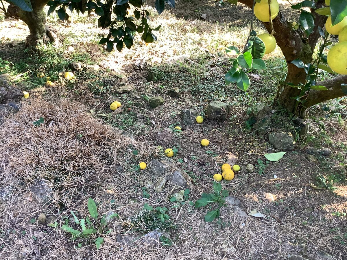 文旦山では、ちらほら摘果した文旦の姿がありました。
