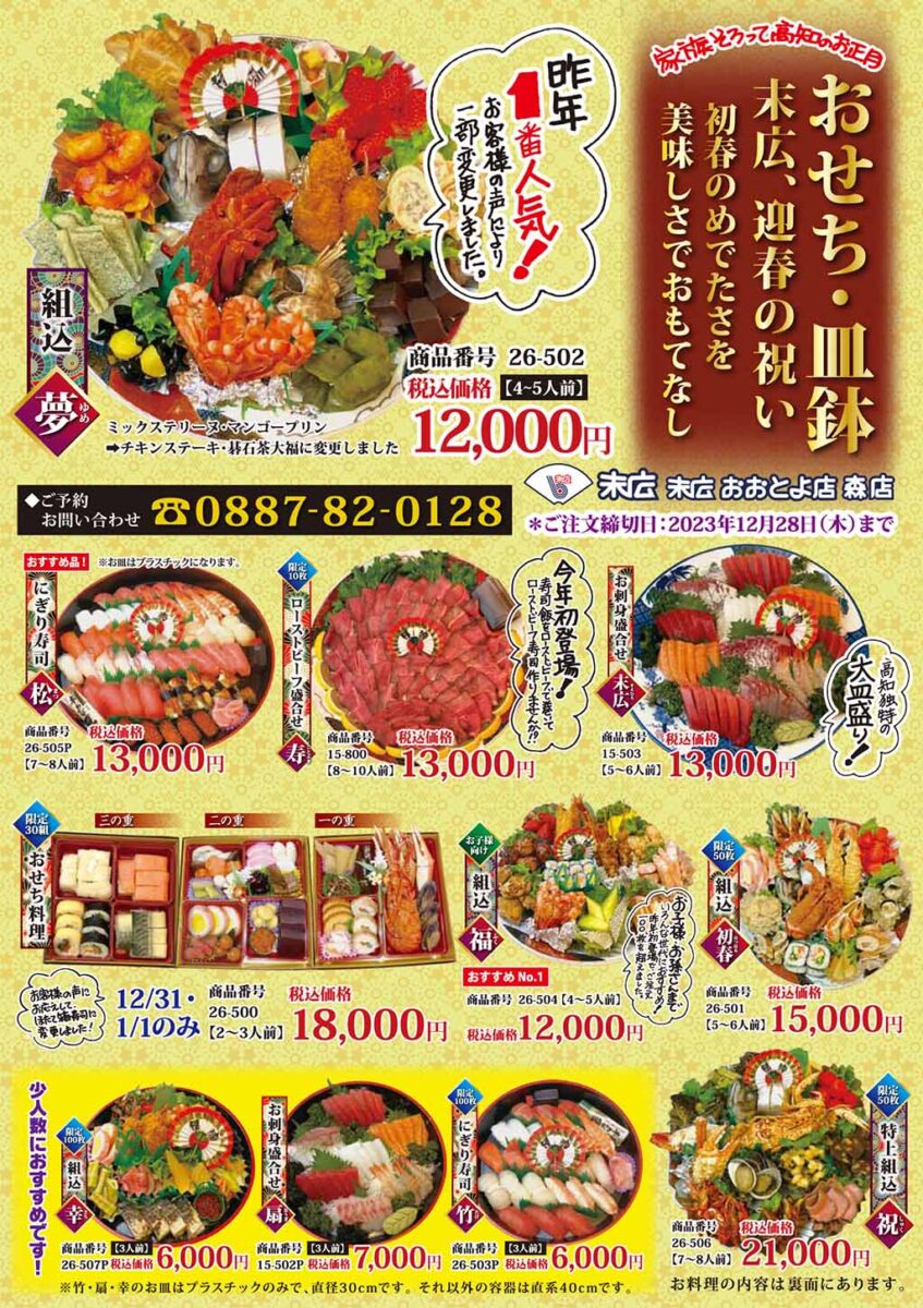 末広特製、お正月皿鉢のご注文受付中です!