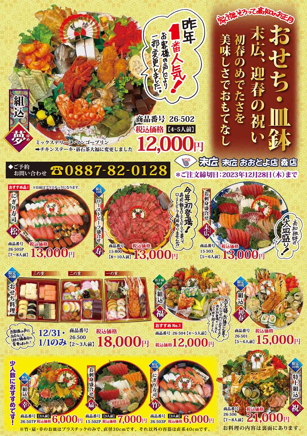 末広ショッピングセンター本店、末広おおとよ店、末広森店で受け付けしております。