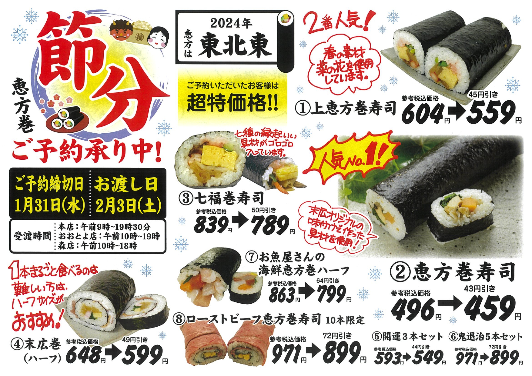 末広ショッピングセンターでは、2/3の恵方巻のご予約好評受付中です!