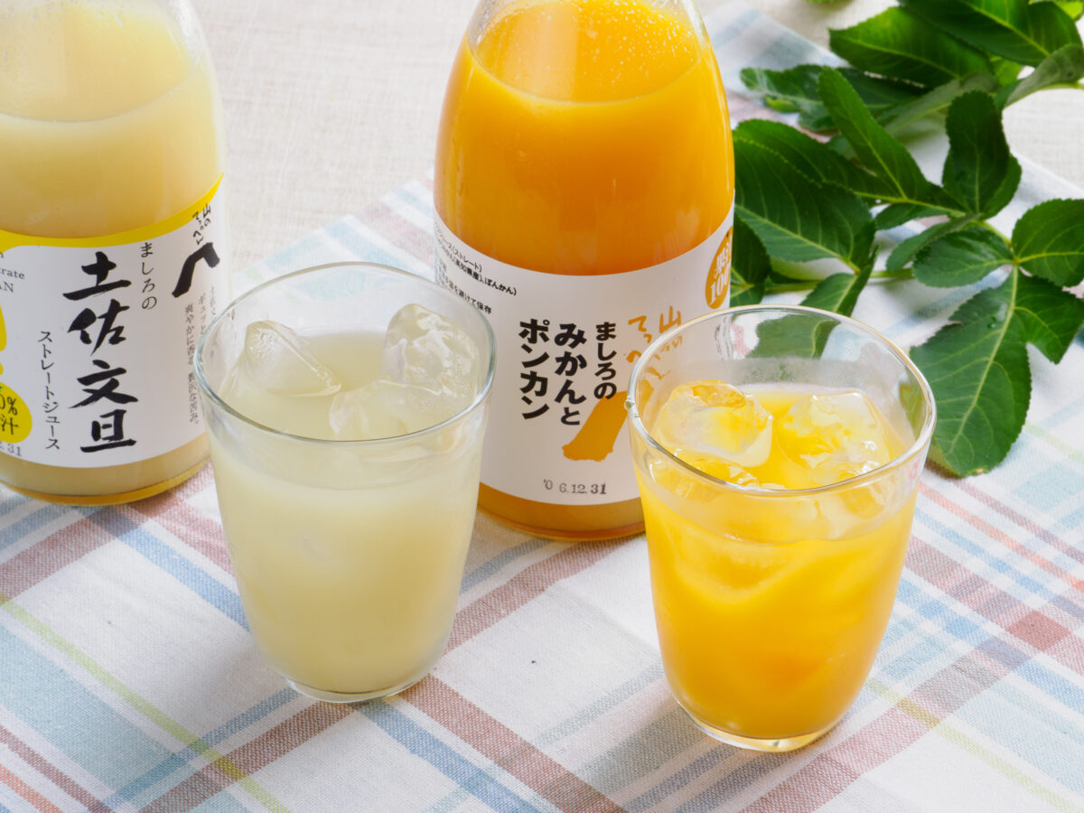 お邪魔したときに、みかんとポンカンのジュース、文旦のジュースをそれぞれいただきました。