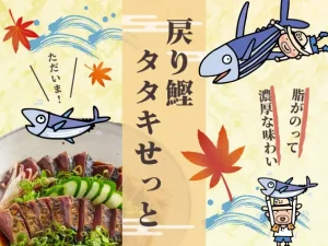 今年も「塩も!タレも!鰹タタキ食べ比べ2節せっと」が入賞いたしました。ばんざーい!