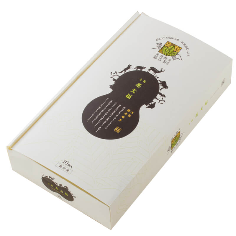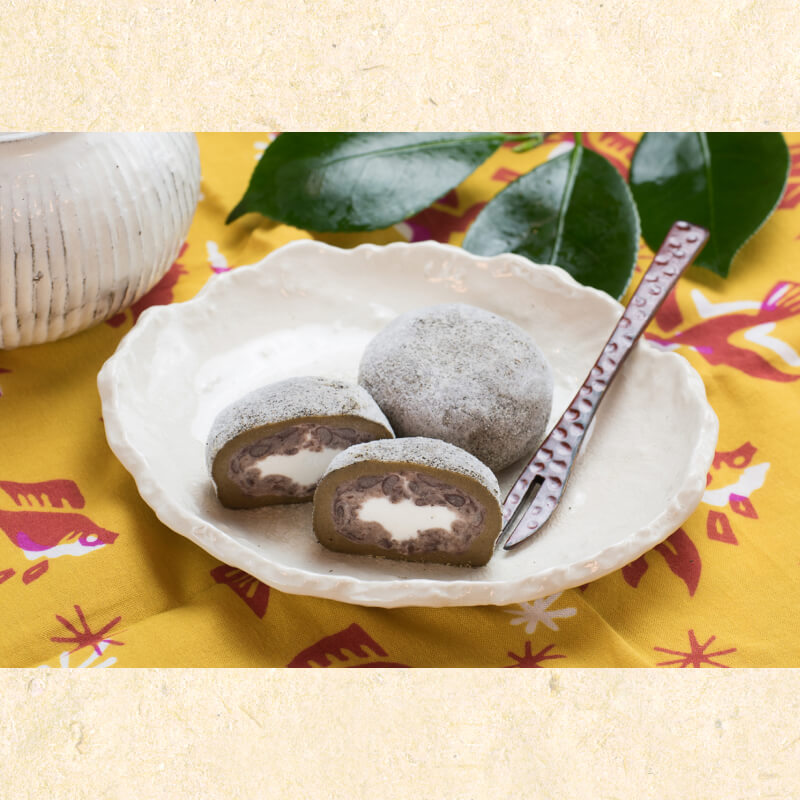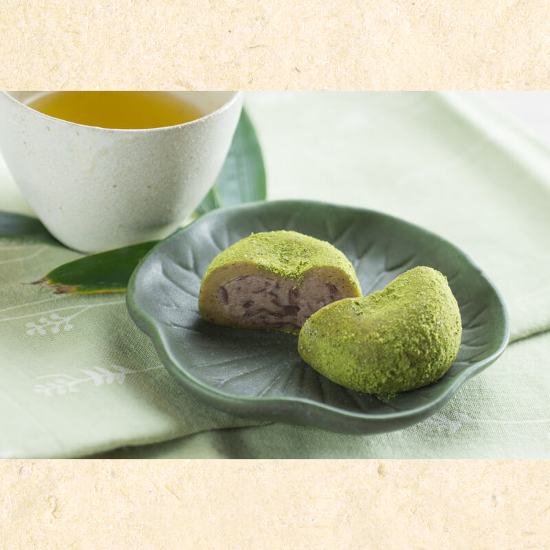 - 「緑」と「黒」の2種類をご用意しています。「緑」は乳酸菌使用の生クリーム餡を包み、「黒」は生クリームとつぶ餡を生茶の紅茶を練り込んだ生地でつつみ、碁石茶をまぶした特徴的な味わいです。