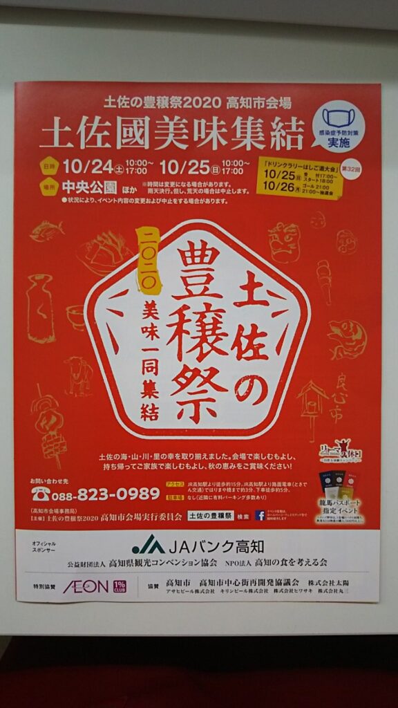 2020年10月24日25日、土佐の豊穣祭に田舎寿司出品します!2020年10月24日(土)、25日(日)に 高知市・中央公園・ほかで開催される土佐の豊穣祭に すえひろ屋の田舎寿司、出店します! ぜひお近くに来られた際は、お立ち寄りくださいませ! 本日の担当、北村でした。高知の美味しい物をお届けする「すえひろ屋」社員のブログueta