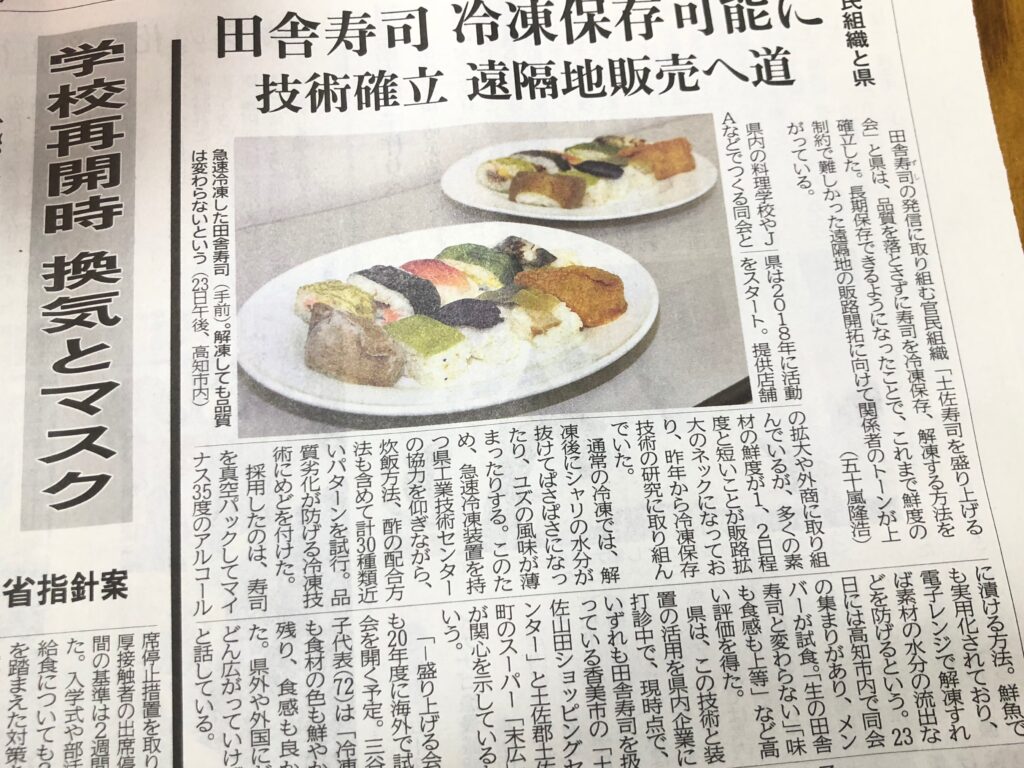高知新聞に気になる記事が載っていました。 なんと、高知県の特産品の一つである「田舎寿司」が冷凍保存ができるようになるとの内容です。 当社はかねてより「田舎寿司」を通信販売しておりますが、一番の課題は賞味期限でした。冷蔵でお届けしております... -
