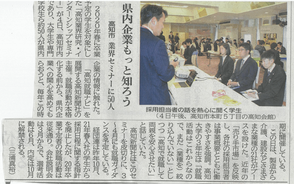 いつの間に掲載!?高知業界研究・インターンシップセミナーに参加しました。
