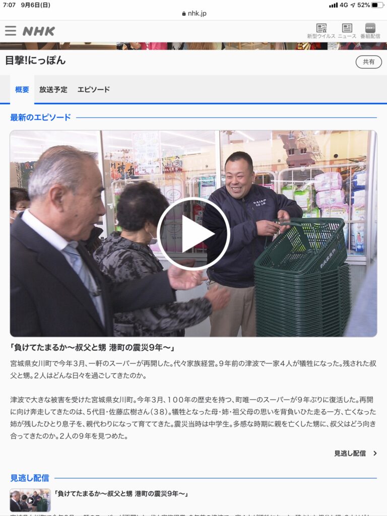 たまたまテレビをつけると、ついつい見入ってしまったテレビ番組でした。 NHKの「目撃!にっぽん」というテレビ番組でした。 スーパーマーケットに関する番組ということで、気になりましたね。 内容は東日本大震災から復興を遂げたスーパーマーケッ... -