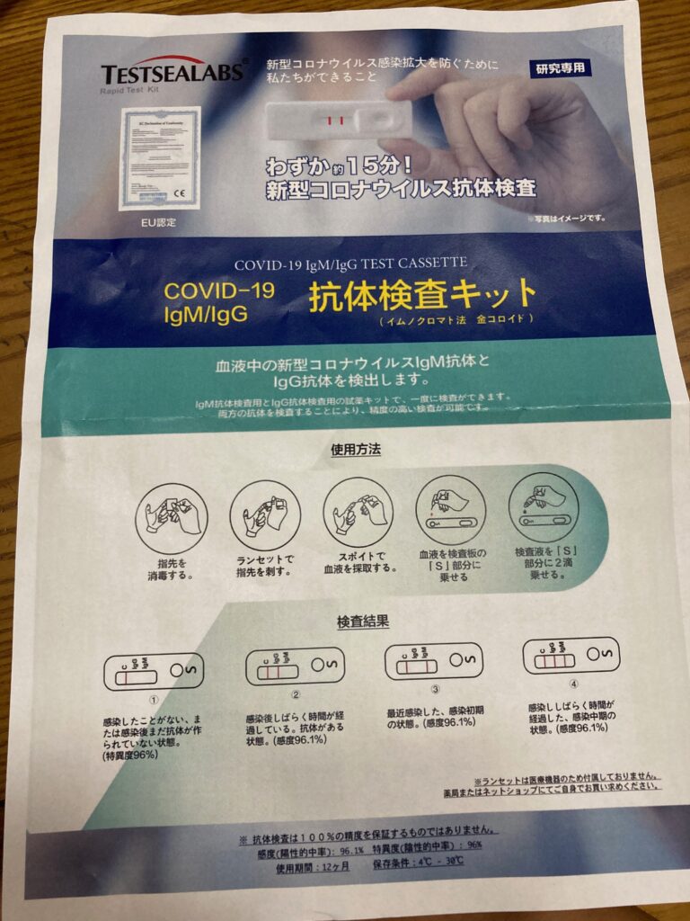 新型コロナウイルス抗体検査キットをやってみた。