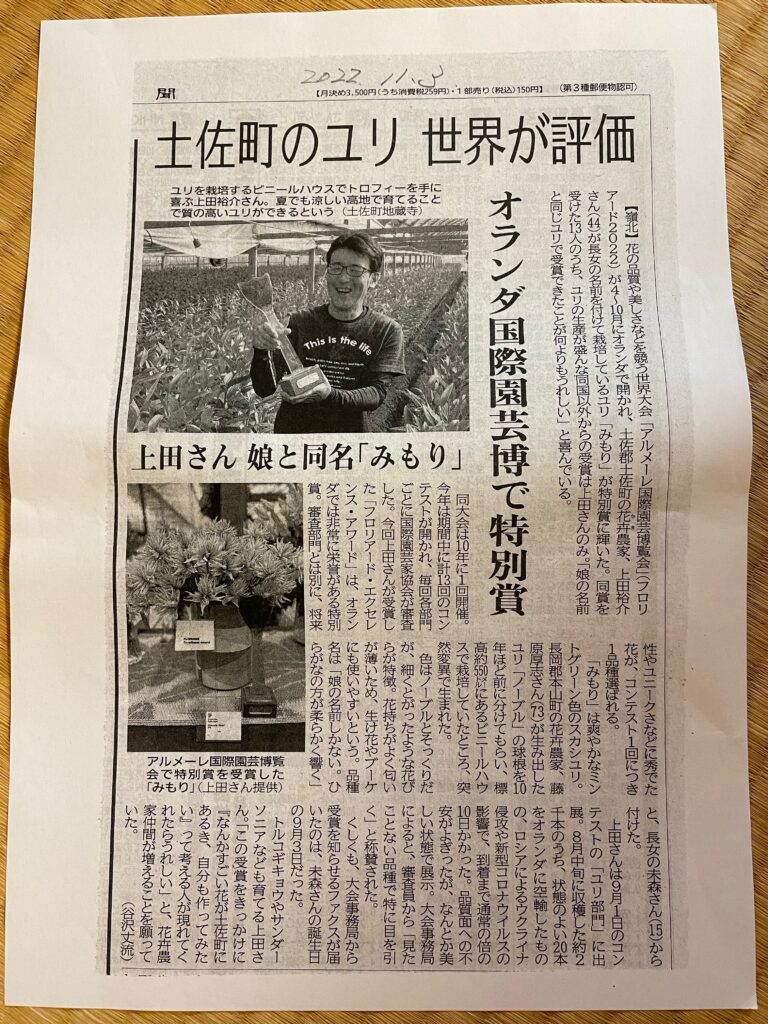高知の土佐町のユリ、世界で評価!?