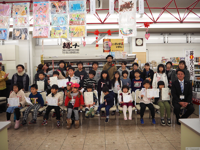 店内で表彰式!?第35回全国児童画コンクールの表彰式を末広ショッピングセンターにて行いました。