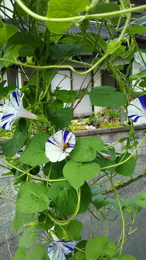 四国地方は梅雨も明け、いよいよ夏本番に!! 夏と言えば朝顔、風鈴、かき氷など色々夏の風物詩が 思い出されますが、今日の全体朝礼でも風鈴の話題が! そして、私も今朝朝顔を携帯に撮ってきました 涼しげな色合いでしょう? 偶然、蜂が花粉を集めている... -