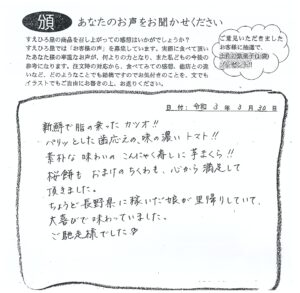 Ⅰ.M. 様 (埼玉県)  【鯨とたたきせっと・お寿司・練物等をお買い求めいただきました。】